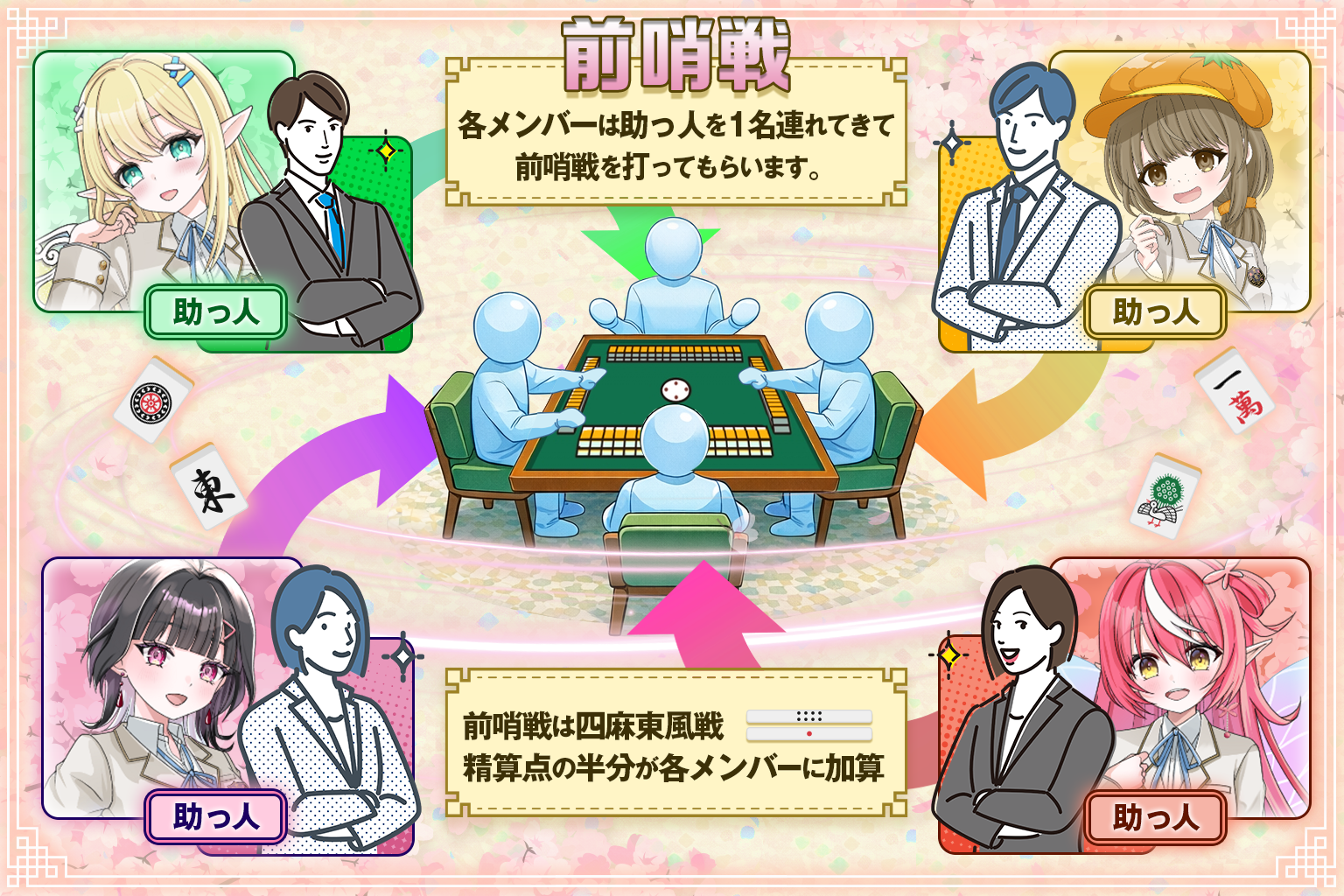 前哨戦は四麻東風戦で、前哨戦のポイントの半分が各メンバーに加算されます。